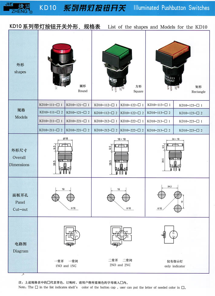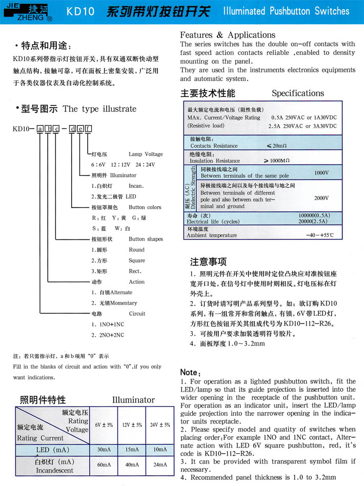 • KD10系列帶燈按鈕開關 產(chǎn)品型號:KD10系列帶燈按鈕開關