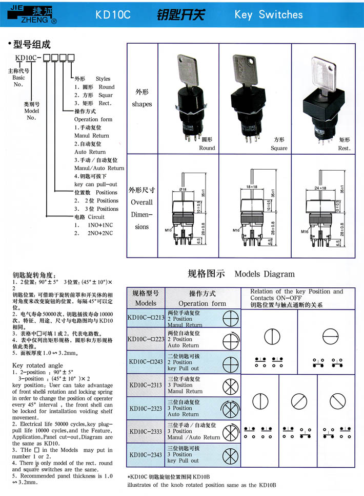 • KD10C鑰匙開關 產(chǎn)品型號:KD10C