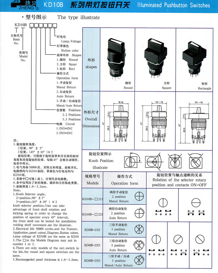 • KD10B系列帶燈按鈕開關(guān) 產(chǎn)品型號:KD10B